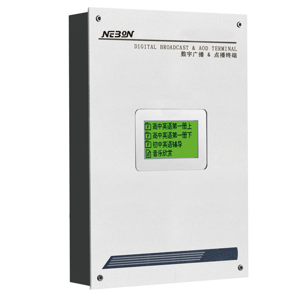 :壁掛式設計,高檔鋁合金面板,3寸高亮液晶屏;:完成網(wǎng)絡音頻流的同步接收解壓,實現(xiàn)打鈴、領導講話、英語聽力播放等;:CD級聲音輸出,高保真音效平衡,保證完美解碼還原音頻信號;:內(nèi)置數(shù)字功放,210W定..