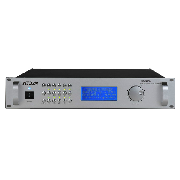 1、一鍵飛梭式快捷流向性按鍵操作編程,液晶屏顯示中文或英文圖形與文字結(jié)合操作菜單。 2、全新編程模式,4個主程序,1個特殊備用程序,一鍵調(diào)用當(dāng)天與明天程序運(yùn)行。并可預(yù)設(shè)晴天雨天運(yùn)行模式。 3、可對內(nèi)置MP3音源進(jìn)行編程定時播放,采用SD卡存儲MP3音樂,可以無限擴(kuò)展存儲容量;設(shè)有快捷鍵,一鍵調(diào)用MP3曲目,簡單、方便。 4、主機(jī)自帶5進(jìn)10出功率分區(qū),實現(xiàn)編程自動或手動分區(qū)廣播,打破傳統(tǒng)的操作模式,隨意打開分區(qū)通道。 5、24小時精確到秒全天候按星期制運(yùn)行程序,定時播放可達(dá)99曲。 6、設(shè)有6路可編程定時控制電源及外控電源管理器,手動操作/自動運(yùn)行。并設(shè)有外接電源時序器的擴(kuò)展接口。 7、消防信號觸發(fā),主機(jī)所接電源自動上電,全部分區(qū)自動打開,報警復(fù)位,轉(zhuǎn)入正常廣播。 8、停電自動保護(hù),所有編輯程序內(nèi)容不丟失,來電自動恢復(fù)運(yùn)行。 9、支持RS232電腦接口,所有功能由電腦直接控制。 10、電腦對主機(jī)編程、配制,再下載到主機(jī),使繁瑣的手機(jī)編程變得簡單方便。 11、遠(yuǎn)程遙控功能,通過電腦對遙控按鍵進(jìn)行功能配制,可將遙控器任意鍵配制成電源管理、MP3播放及分區(qū)控制。 12、支持主機(jī)脫機(jī)運(yùn)行。 13、電腦對主機(jī)進(jìn)行時間更新,使主機(jī)時間跟電腦時間保持同步。 性能參數(shù):| 設(shè)備型號 | NEW8600 |